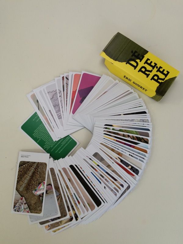 « En choisissant la forme d’un jeu de cartes pour donner à voir une sélection de ses créations artistiques, le projet éditorial d’Éric Gouret met en exergue la dimension ludique de son travail. Ni une œuvre en soi, ni un catalogue raisonné de son corpus artistique, le jeu de cartes est un objet multiple et composite qui déploie diverses facettes de son œuvre selon le principe de l’échantillonnage. Abandonnez tarots, belotes, batailles, poker et autres bridges… En imaginant ce jeu, Éric Gouret met au point une façon originale de rebattre les cartes de son parcours et de sa pratique artistiques. Une façon de dire : à vous de jouer maintenant. »