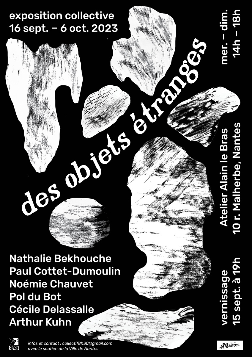 jusqu’au 6 octobre 2023 à l’Atelier Alain Lebras, Nantes Finissage le vendredi 6 octobre, à partir de 19h Une exposition collective de Nathalie Bekhouche, Paul Cottet-Dumoulin, Noémie …