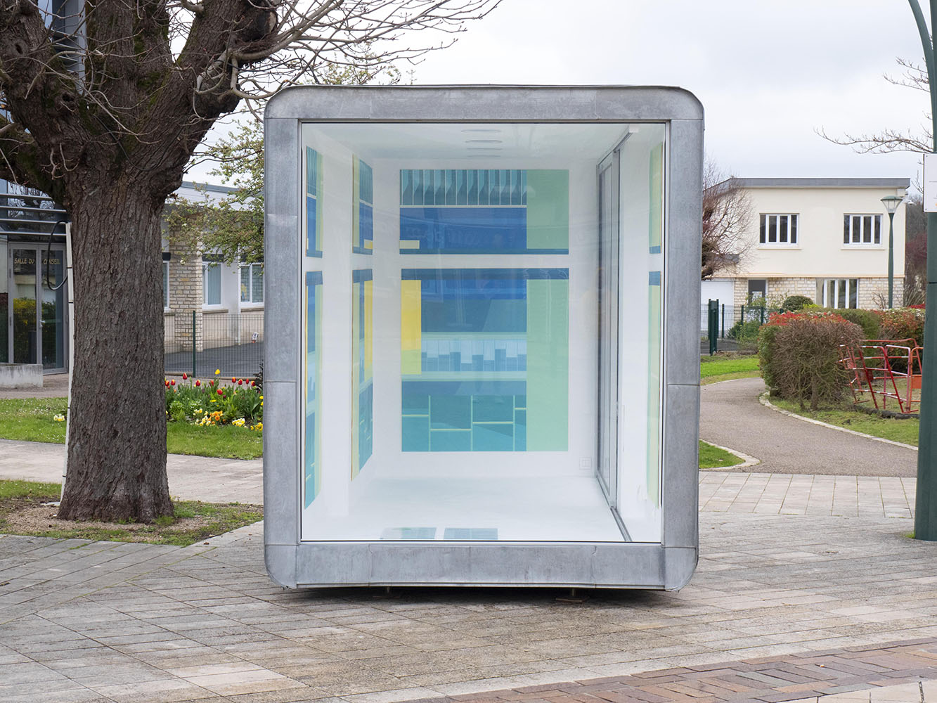 Cette microarchitecture propose de grandes baies laissant voir l’intérieur de cet espace fermé. L’expérience se fait à travers une vitre. La fenêtre et la manière dont elle cadre notre regard sont les inspirations de cette installation.