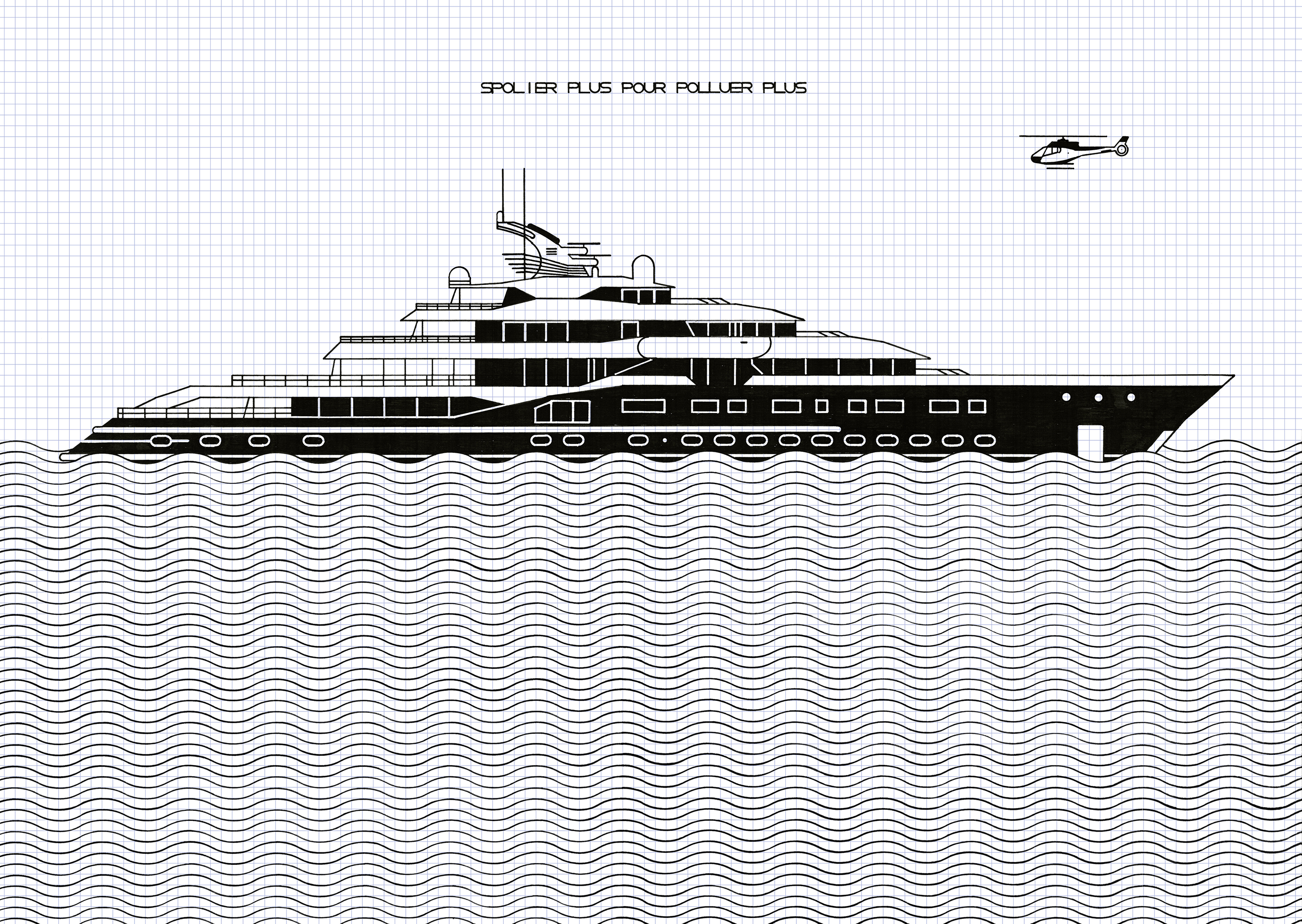 « Que cache ce titre délicatement guindé et bureaucratique, L’Office du dessin ? Ce projet d’envergure, qui poursuit sa croissance depuis 2016, révèle une entreprise aux ambitions paradoxales. Dans la forme, Olivier Garraud défend une esthétique modeste, « qui n’aurait l’air de rien » : son support, la feuille quadrillée, renvoie aux dessins des cahiers d’école, de ceux qui comblent l’ennui et autorisent de petites et grandes échappées. L’artiste utilise toujours les mêmes outils, des règles, des feutres, parfois des Rotring, et il se restreint strictement au noir et au blanc. »