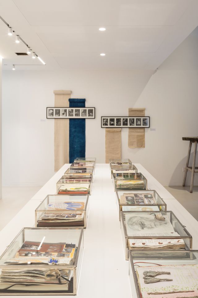Face à cette installation, les Carnets Nomades, compagnons de route d’Anne de Vandière, racontent l’histoire, sous forme d’empreintes, de textes et de dessins, de bijoux et de plantes, de ses rencontres avec les tribus, témoignages des contacts possibles entre deux civilisations qui s’éloignent, mais qui pourtant se retrouvent autour de la main créatrice.